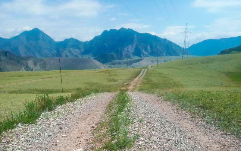 Дорога сейчас выровнялась, идём примерно на высотах 1700-1900 м и через 30 минут заезжаем в районный центр. Здесь предварительно была забронирована гостиница. Всё-таки очень холодные ночи здесь для ночёвок в палатке, да и зарядить всю свою амуницию уже пора настала.