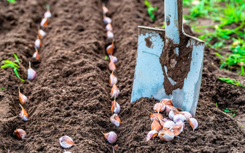 Чеснок является традиционной культурой, высаживаемой под зиму. Необходимо для лучшей перезимовки брать зубки средней массы 6-8 г. Чтобы у чеснока сформировалась мощная корневая система и перезимовка прошла успешно, от посадки до устойчивого промерзания почвы должно пройти не менее 40 суток. Очень важно этот срок рассчитать. Высаживают зубки на глубину 6-8 см.