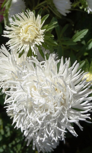 ОднолетнееВеликолепные цветы для букета. Растение высотой до 75 см, пирамидальной формы. Соцветия округло-плоские, махровые, диаметром 7-10 см. Язычковые цветки сложены по длине в трубки, слегка загнуты внутрь, окраска белая. Используют очень широко: для посадки в сборные цветники группами, на рабатки – рядами, на срезку.