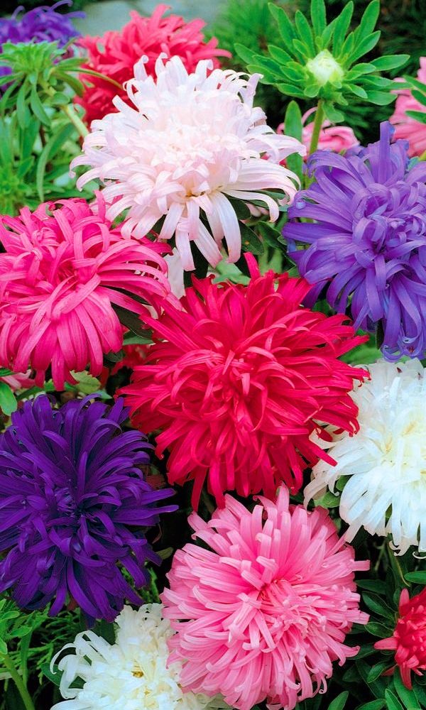 Самые ранние букеты из астр. Растение высотой 30-45 см, компактное, сильноветвистое, стебли крепкие. Соцветия махровые, диаметром 4-6 см, разнообразной окраски. Используют очень широко: для посадки в сборные цветники группами, на рабатки – рядами и на срезку...