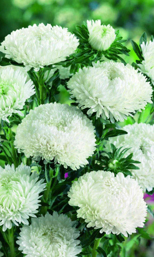 Очаровательные астры серии «Балун» превосходят по плотности и махровости соцветий. Изящное растение высотой 50-60 см с густомахровыми соцветиями, устойчивыми к проникновению дождя. Соцветия плотные, шаровидные, нежно жёлтого цвета, диаметром 9-13 см, по 6-8 штук на растении...