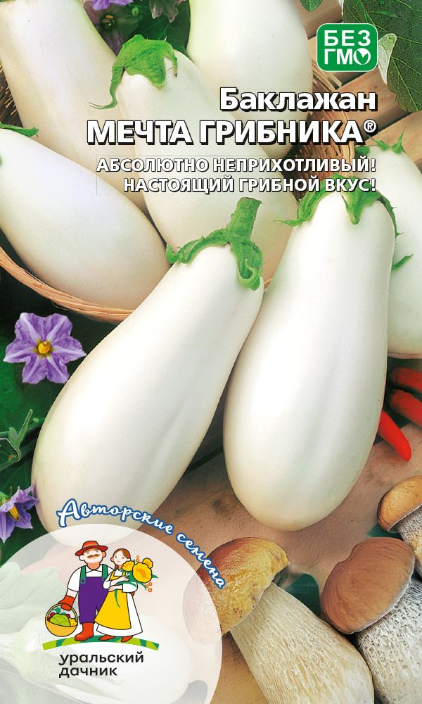 Среднеспелый(110-116 дней) сорт для открытого и закрытого грунта. Куст прямостоячий, высотой 50-70 см. Плоды удлиненно-грушевидные, белые, глянцевые, массой 200-250 г с тонкой кожицей. Мякоть белоснежная, очень нежная, без горечи, с нежным грибным ароматом.Ценность сорта: высокая урожайность, отличные вкусовые качества, выравненность плодов, неприхотливость выращивания. Используется в домашней кулинарии, для переработки, сушки, соления и маринования...