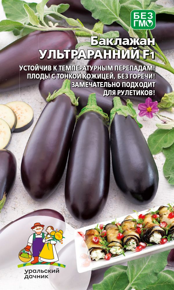 Раннеспелый сорт для выращивания в плёночных теплицах и парниках. Растение сомкнутой формы, высотой 90-110 см. Плоды глянцевые, тёмно-фиолетовые, цилиндрические, длиной 15-20 см, массой до 380 г. Мякоть белая, плотная, без горечи, с высокими вкусовыми и технологическими качествами.Ценность сорта: способность завязывать плоды при неблагоприятных погодных условиях, отсутствие шипов на чашечке. Рекомендуется для всех видов кулинарной переработки, замораживания и консервирования...