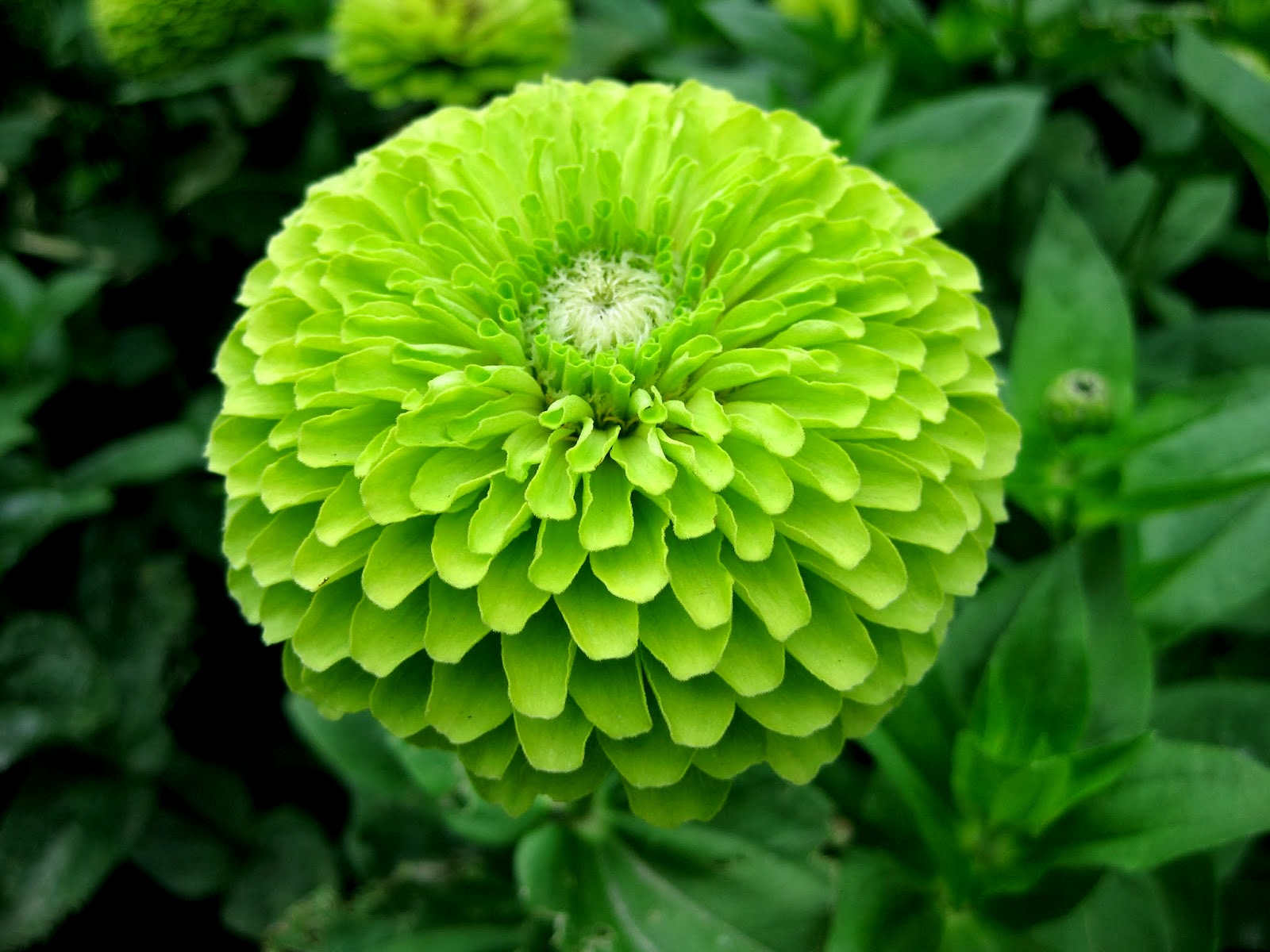 ОднолетнееКрупноцветковый однолетний сорт с цветками необычной окраски. Растение мощное, высотой до 60 см. Цветки крупные, махровые, полушаровидной формы, редкой зёленой окраски. Отличается обильным и продолжительным цветением, прочными ветвящимися цветоносами.
