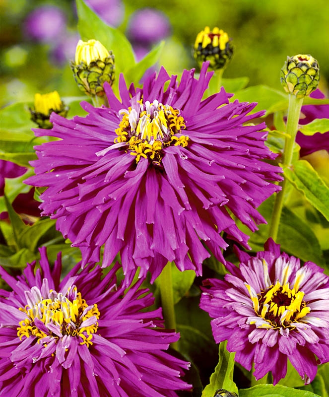 ОднолетнееСамый яркий и наиболее любимый цветок в летнем саду, порадует не только оригинальной формой крупных соцветий, но и привлечёт внимание неповторимой окраской. Насыщенно лиловые цветки скручены в трубочки и собраны в густомахровые соцветия, диаметром до 10 см. Цветение обильное и продолжительное. Очень красиво смотрится в клумбах, рабатках, группах, больших массивах.