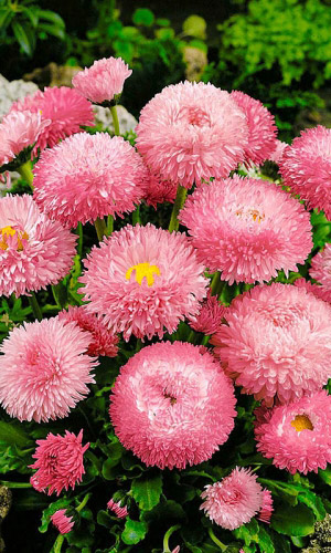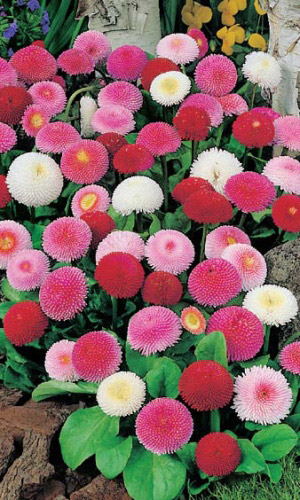 Популярные миниатюрные маргаритки высотой до 15 см. Многочисленные соцветия диаметром до 2,5 см с перьевидными «лепестками» разнообразной окраски. Цветёт в апреле-июне. Универсальное использование: как почвопокровное растение, для обрамления клумб, балконных ящиков,...