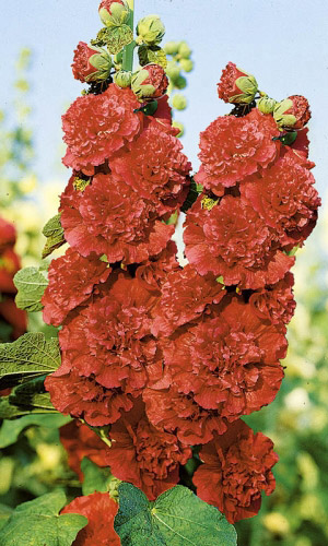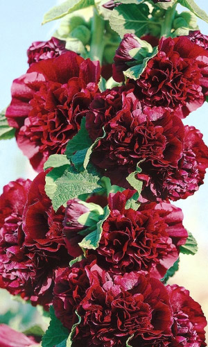 Классические садовые гиганты. Стебель мощный, ветвистый, высотой до 2 м. Крупные бархатистые махровые алые цветки собраны в длинные кистевидные соцветия. Цветёт в июле-сентябре. Используются для небольших групп на газоне, миксбордеров, декорирования стен, заборов и на...