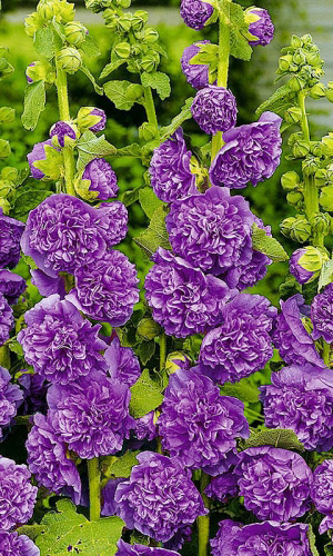 Классические садовые гиганты. Стебель мощный, ветвистый, высотой до 2 м. Крупные бархатистые махровые цветки сине-фиолетовой окраски собраны в длинные кистевидные соцветия. Цветёт в июле - сентябре. Используются для небольших групп на газоне, миксбордеров, декорирования...