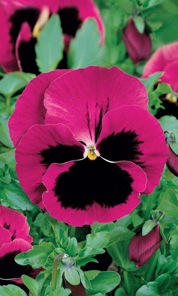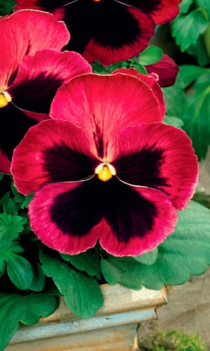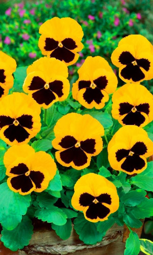Одни из самых любимых садовых цветов. Растение с быстрым ростом, красиво и обильно облиственное, с крупными цветками, сидящими на короткой и твердой цветоножке, высотой 15-20 см. Цветы крупные, трёхцветные. Верхние лепестки красно-бордовые, нижние жёлтые, с чёрными пятнами у...