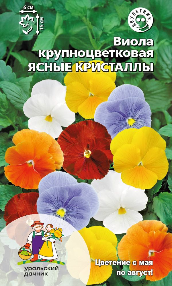 Яркая смесь для любого цветника. Растение красиво и обильно цветущее, с крупными цветками. Цветки крупные, диаметром 6-8 см, высоких декоративных качеств и разнообразных окрасок. Виолы хорошо переносят пересадку в цветущем состоянии, поэтому их высаживают в балконные ящики, садовые вазы, рабатки и клумбы во время цветения. ...