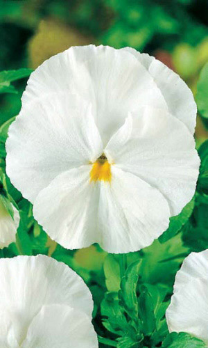 Группа Швейцарские гиганты. Растение с исполинскими цветками, сидящими на короткой и твердой цветоножке. Цветки до 8 см в диаметре, верхние лепестки белые, на 3-х нижних – пятна у основания лепестков. Используют для клумб и бордюров.Посев: для весеннего, обильного...