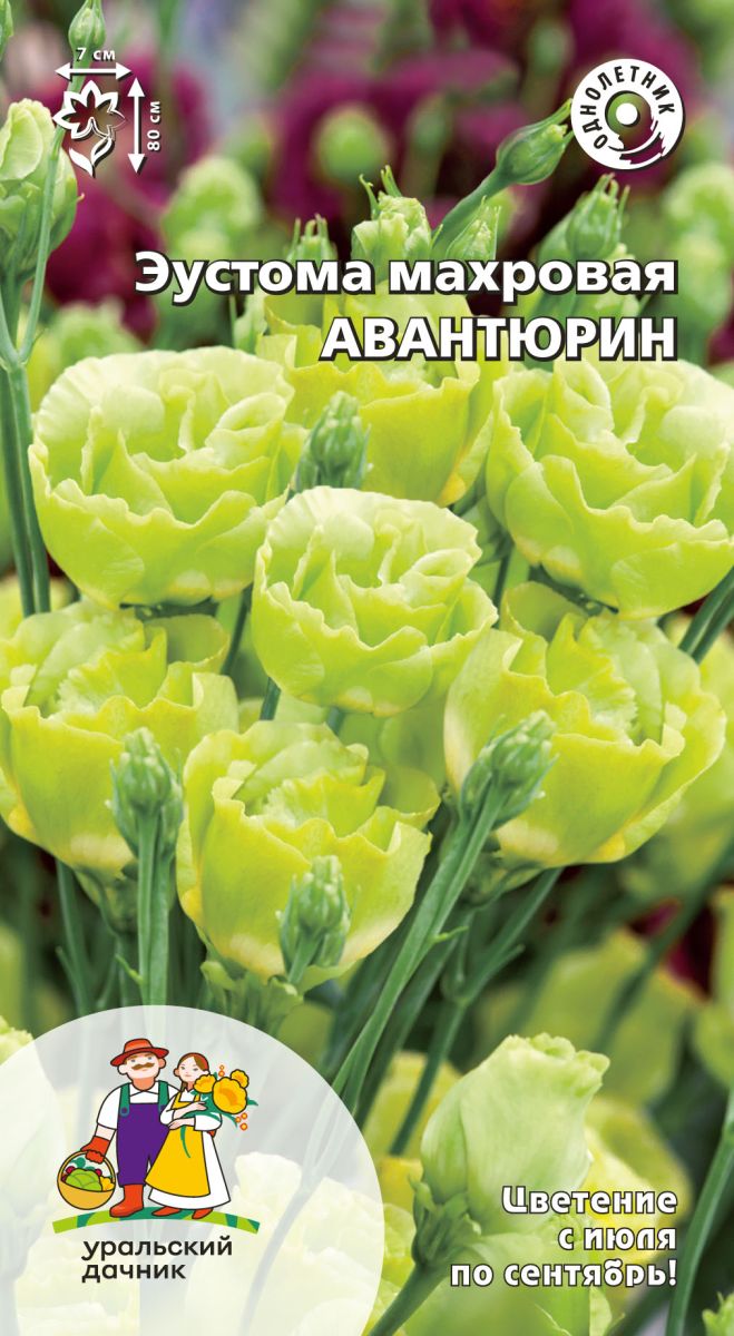 ОднолетнееНеобыкновенно красивое многолетнее растение, выращиваемое как однолетнее или оранжерейное и используемое преимущественно для получения роскошной срезки. Куст прямостоячий, с высокими прочными цветоносами, на каждом из которых образуется огромное количество бутонов. Большие, пышные цветки необычной зеленоватой окраски, по форме очень напоминающие розочки, создают атмосферу праздника и подарят массу положительных эмоций. Великолепное комнатное украшение. Букет из эустомы прекрасно стоит в вазе, постепенно раскрывая новые бутоны. Отличается очень обильным цветением.