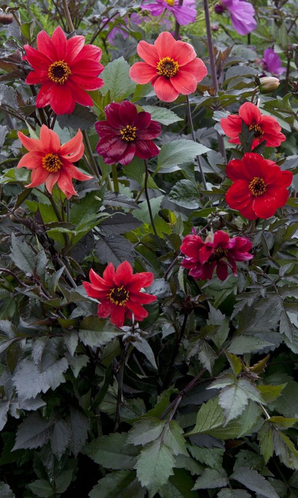 Жизнерадостные низкорослые георгины! Растения компактные высотой около 35 см. Соцветия красные диаметром 8-9 см. Цветет с июля по октябрь. Используют в цветниках большими группами на клумбах. Прекрасный материал для срезки...