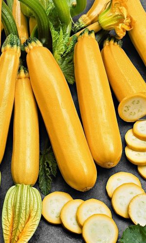 Новый, высокоурожайный среднеранний сорт, период от всходов до первого сбора 45-50 дней. Растения кустовые, компактные. Плоды удлинённо-цилиндрические, массой 0,6-0,8 кг, привлекательного внешнего вида, выравненные, не перерастают. Мякоть жёлтая, нежная, сочная. Вкусовые качества отличные. Рекомендуется для домашней кулинарии. Сорт отличается высоким завязыванием плодов при любых погодных условиях...