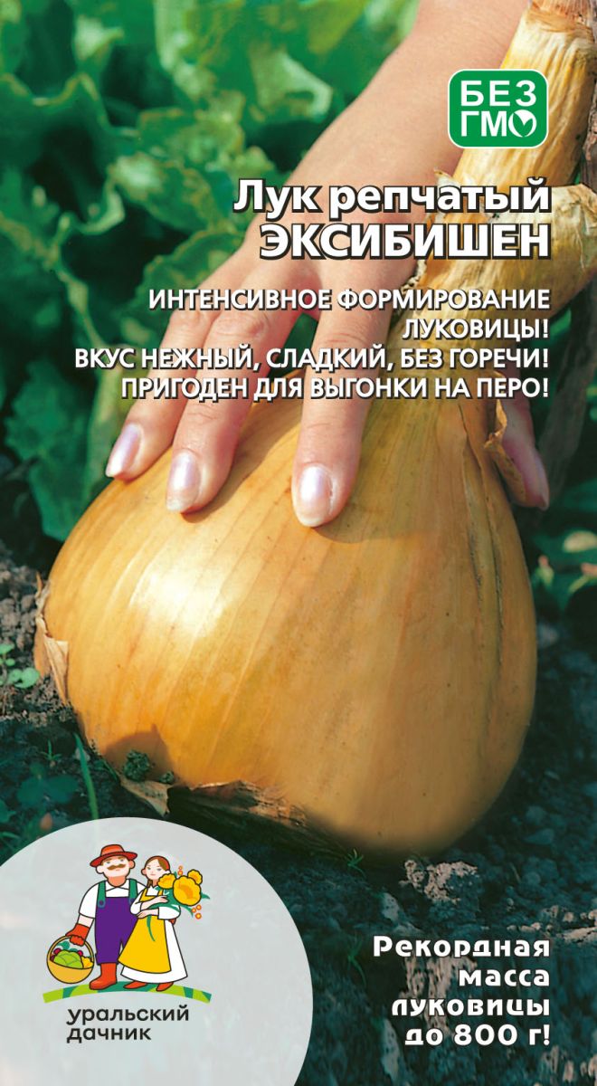 Среднепоздний, холодостойкий, исключительно урожайный сорт для выращивания на репку в однолетней культуре. Даёт высокий урожай независимо от почвенно-климатических условий. За сезон формирует красивые полноценные плотные луковицы овальной формы, массой до 800 г. Сухие наружные чешуи соломенно-жёлтые, внутренние – сочные, белые и очень сладкие. Обладает повышенной устойчивостью к болезням. Для получения очень крупных луковиц рекомендуется выращивать через рассаду.