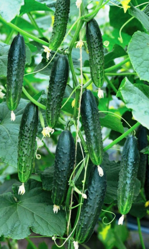 Раннеспелый партенокарпический гибрид, для открытого грунта и плёночных теплиц. В плодоношение вступает через 42-44 дня. Растение с букетным типом завязи, формирует несколько зеленцов в одном узле. Плоды цилиндрические, крупнобугорчатые, слегка ребристые, тёмно-зелёные...