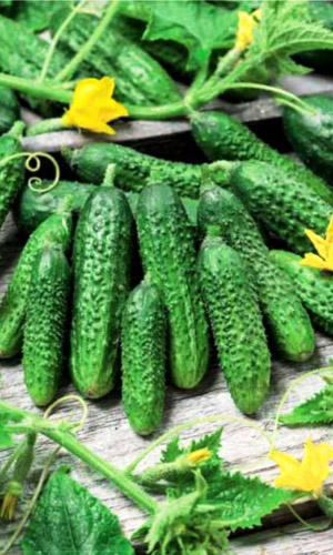 Самоопыляемый! Суперпопулярный пучковый гибрид! Холодостойкий, с длительным плодоношением, до заморозков! Крепкий, обалденно вкусный, хрустящий, без горечи! Создан для засолки! Плоды крупно-бугорчатые, белошипые, длиной 10-12 см, плотные, сладкие. От обилия плодов не видно листьев! Не перерастает, не бывает горьким, не образует пустот при консервировании и засолке...