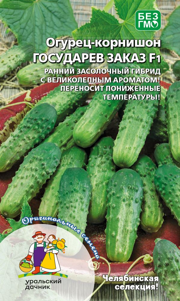 Настоящий засолочный гибрид ГОСУДАРЕВ ЗАКАЗ, который можно выращивать на открытых пространствах, и в закрытом грунте, по вкусовым качествам значительно превзошёл своих старорусских сородичей, поэтому неважно, как он засолен (замаринован): в дубовой бочке, кадке или в стеклянной банке, – всегда получается хрустящим, красивым и невероятно вкусным. Многие садоводы уже знакомы с этим российским огурцом, восстановленным уральскими селекционерами, и для зимних закаток выбирают именно его, так как гибрид по «засолочным» показателям – лучший из лучших. Учёные сохранили засолочные и вкусовые качества, а также наделили его хорошим иммунитетом к почвенным патогенам, устойчивостью к ряду заболеваний (ложной мучнистой росе и мучнистой росе, вирусу огуречной мозаики, кладоспориозу) и колебаниям температур. Созревает корнишон, формирующий завязи преимущественно женского типа цветения, всего через 40 дней после всходов. Свежие плоды без горечи, очень ароматные, высоких вкусовых характеристик. Но совершенно особенными, благоухающими каким-то невообразимым огуречным запахом, они получаются в процессе соления или маринования! Плоды до 6–8 см рекомендуются для баночных консервирований, более крупные – 10-12 см идеальны для профессиональной засолки в бочках.