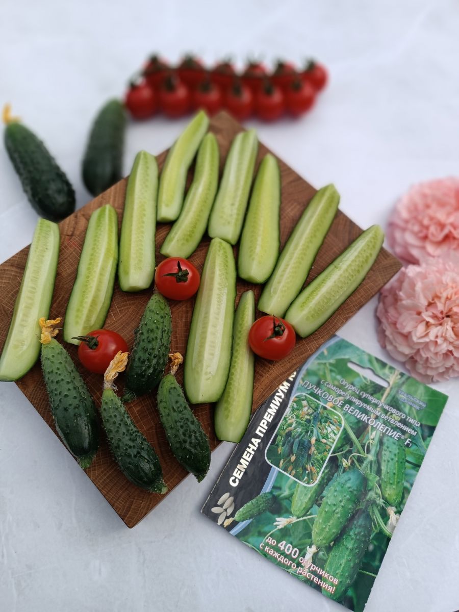 Скороспелый партенокарпический (самоопыляемый) пучковый корнишонный гибрид. Характеризуется обильным плодоношением в широком температурном диапазоне, активно плодоносит до глубокой осени. Светолюбивый, ветвление среднее или выше среднего; характерен 2-й тип саморегулирования ветвления (когда высокая нагрузка урожаем на главном стебле сдерживает интенсивное отрастание боковых побегов). В узлах формируется 3-7 завязей. Зеленцы бугорчатые, белошипые, ярко-зелёной окраски, длиной 8-11 см; вкусовые и засолочные качества высокие. Гибрид устойчив к основным болезням огурца. Сорт отлично переносит похолодания, поэтому особенно рекомендуется для выращивания в Северных районах, а также на участках, расположенных в низинах, где возможны резкие перепады температуры и холодные туманы.