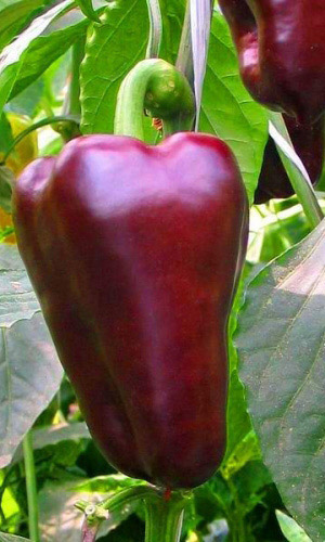 Среднеспелый сорт. Для открытого грунта и плёночных теплиц. Растение полураскидистое, средней высоты. Плод пониклый, конусовидный, глянцевый, окраска в технической спелости фиолетовая, в биологической - красная. Число гнезд 3. Масса плода 120 г, толщина стенки 6 мм...