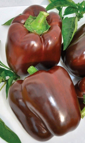 Новый среднеспелый гибрид сладкого перца для выращивания в защищённом грунте. Растение высотой 80-120 см, сильнооблиственное, раскидистое. Плоды кубовидные, вишнёво-шоколадного цвета, 3-4-х камерные, массой до 200 г, с толщиной стенки 7-9 мм. Отличается от других очень сладким вкусом и очень высокой урожайностью. Ценность гибрида: оригинальный внешний вид плодов, стабильно высокая урожайность, отличные вкусовые качества...