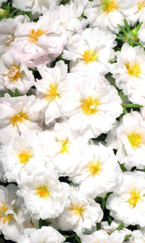 Великолепный цветочный ковёр. Растение со стелющимися сочными светло-зелёными стеблями образует кустик высотой 10 см. Чисто-белые, похожие на розочки, махровые цветы диаметром 3-4 см открыты только в ясную погоду. Цветёт с июня до заморозков.Агротехника. Растение тепло- и...