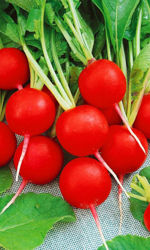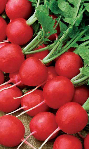 Самый ранний из известных сортов редиса (срок созревания 16 дней). Корнеплоды ярко-красные, округлой формы, очень сочные, деликатесного вкуса, имеют великолепный товарный вид. Используют для ранней выгонки в открытом и защищённом грунте. Ценность: высокая товарность, выровненность корнеплодов, отличные вкусовые качества, устойчивость к растрескиванию и стрелкованию...