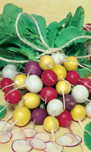 Раннеспелые сорта редиса (срок созревания корнеплодов 16-22 дней) для ранней выгонки в открытом и защищённом грунте. Корнеплоды имеют разную форму, выравненные, различных окрасок: красные, розовые, белые и других цветов. Мякоть белая, нежная, очень сочная. Эфирные масла придают деликатесный слабоострый вкус. Сорта высокоурожайные, устойчивы к растрескиванию корнеплодов и стрелкованию...