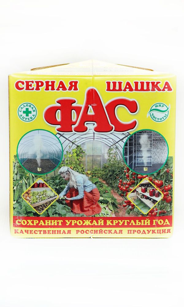 Современное средство серная шашка ФАС для фумигационной обработки пустых погребов и подвалов, парников, теплиц и оранжерей, которая уничтожает:практически всех возбудителей болезней древисины;бактериальных инфекций;от грибка, плесени и гнили любые поверхности;насекомых-вредителей, от древоточцев до клещей и их личинок;грызунов (крыс, домовых мышей, полевок)...