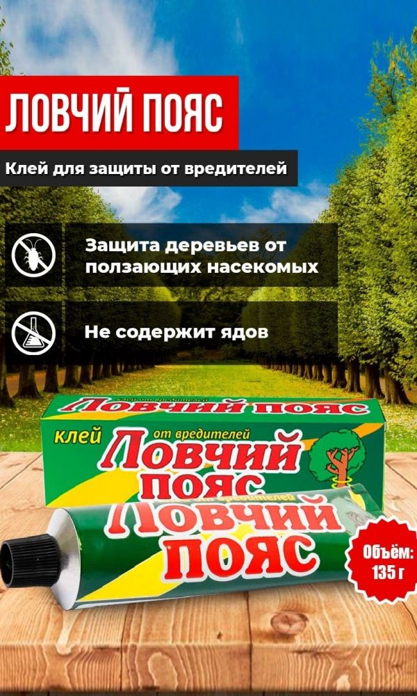 Ловчий пояс предназначен для защиты деревьев от вредных ползающих насекомых: гусениц, муравьев и др. Ловчий пояс является экологически безопасным, не содержит ядов. Он устойчив к влажности, не сохнет и не теряет своих свойств длительное время.Применение: вокруг ствола...