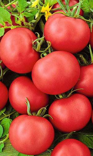 Среднеспелый, высокоурожайный сорт для открытого и закрытого грунта. Растение мощное, высотой 100-120 см. Плоды плоскоокруглой формы, малинового цвета, массой 200-400 г, сочные, мясистые, отменного вкуса. Ценность сорта: крупноплодность, высокая урожайность и товарность плодов, устойчивость к болезням, отличные диетические качества, способность длительно плодоносить. Рекомендуется для употребления в свежем виде, переработки на томатопродукты и консервирования...