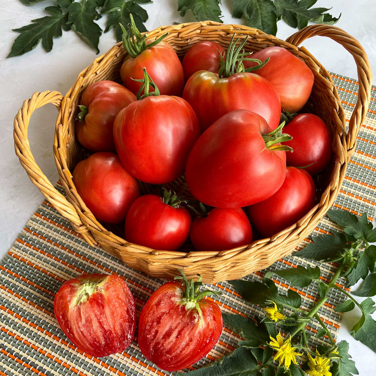 Суперурожайный! Плоды сердцевидной формы, мясистые, очень сладкие и вкусные, массой до 900 г. Идеален для приготовления томатов в собственном соку. Отличается высокой устойчивостью к болезням: альтернариозу, фузариозу, вирусу табачной мозаики...