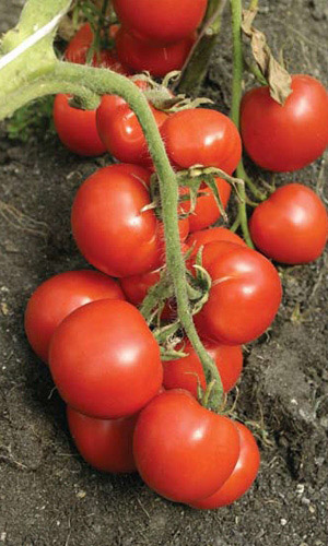 Лучший раннеспелый гибрид для остеклённых и плёночных теплиц. Растение высотой 150-180 см. В соцветии 6-8 круглых, гладких плодов равномерной сочно-красной окраски, массой 80-100 г. Вкусовые качества отличные. Гибрид отличается высокой энергией плодообразования, быстрым формированием плодов, устойчивостью к кладоспориозу, фузариозу и вирусу табачной мозаики.Используется для цельноплодного консервирования и употребления в свежем виде...