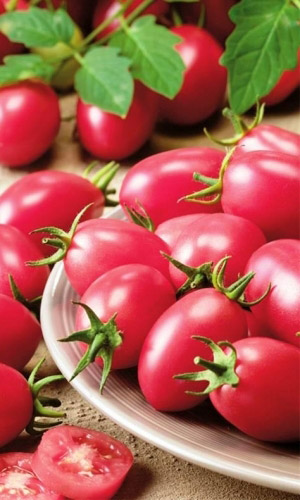 Розовая окраска плода сочетается с отличными вкусовыми качествами. Для открытого грунта. Среднеспелый сорт. Период от всходов до начала созревания 110-125 дней. Растение высотой 60-70 см. Плоды удлинённо-овальные, массой 80-115 г. В кисти 5-6 плодов. Сорт устойчив к комплексу болезней. Универсальное использование...