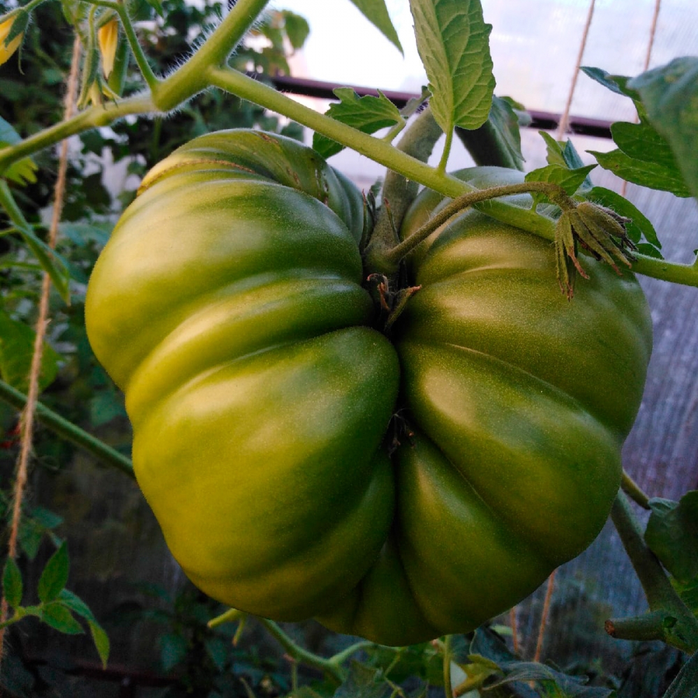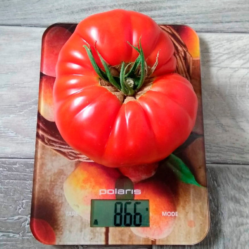 Новый салатный среднеспелый (110 дней) сорт Челябинской селекции, создан для выращивания во всех типах теплиц и парниках. Растение мощное, высотой 1,8-2,0 м, хорошо облиственное, индетерминантное. Сорт требует обязательной подвязки как самого ствола, ветвей так и кистей, кисти сильно нагружены плодами, очень тяжёлые. Плоды крупные, массой до 1,5 кг, ребристые, красного цвета. Мякоть сочная, с маленькими семенными камерами, отличных вкусовых качеств. Использование универсальное – в свежем виде, для заморозки.