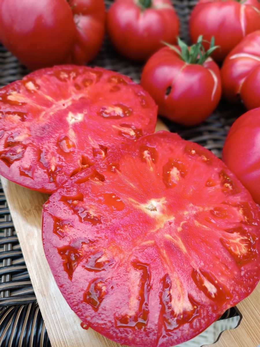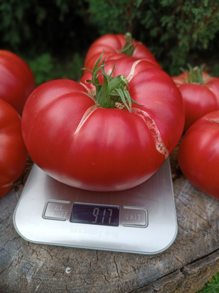 Уникальное сочетание скороспелости, крупноплодности и урожайности. Плоды классической плоскоокруглой формы, красные, гладкие и очень ароматные, вкусные. Первые плоды достигают массы 400 г, последующие – 250-300 г.