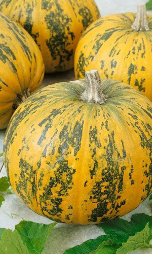 Один из лучших столовых сортов для длительного хранения в зимний период. Плоды сплюснутые, массой 4-5 кг, с морщинисто-сегментированной поверхностью, серые, со светло-серой крапчатостью и полосами. Мякоть насыщенно-оранжевая, плотная, толстая, хрустящая, очень сладкая. По вкусовым качествам сорт не уступает мускатным тыквам. В сыром виде – лучше моркови...