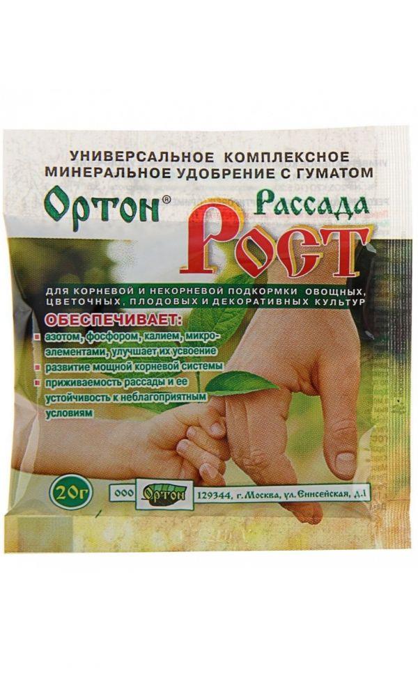 Комплексное водорастворимое бесхлорное минеральное удобрение «Рассада-Рост» содержит макро- и микроэлементы для подкормок рассады овощных и цветочных культур.Содержание пакета растворить в 10 л воды. Полученный раствор используют для корневых и внекорневых подкормок с интервалом 7-10 дней из расчета обычной поливочной нормы на 1 м2.Возможно проведение подкормок минеральным удобрением «Рассада-Рост» овощных и декоративных культур в период всей вегетации. ...
