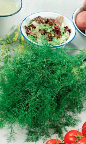 Масса до 55 гУникальный сорт укропа, формирующий мощный облиственный куст. Листья крупные, длина 28-36 см, ширина 30-36 см, зелёные с восковым налетом. Растение долго не цветёт, образует мощные пушистые ветви. Хорошо подходит для подзимнего посева. Молодые растения переносят весенние возвратные заморозки. Урожай зелени составляет 2,8-6,0 кг/м2. Рекомендуется для использования в свежем виде, сушки, соления, замораживания. Семена используются в качестве специи при засолке и мариновании...